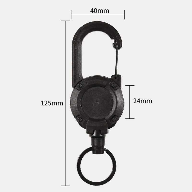 - Strapazierfähige Konstruktion, um dem ständigen, wiederholten Gebrauch standzuhalten. Der Getriebemechanismus wickelt das Kabel automatisch auf - stark genug, um Dutzende von Schlüsseln oder kleinen Werkzeugen zu ziehen.