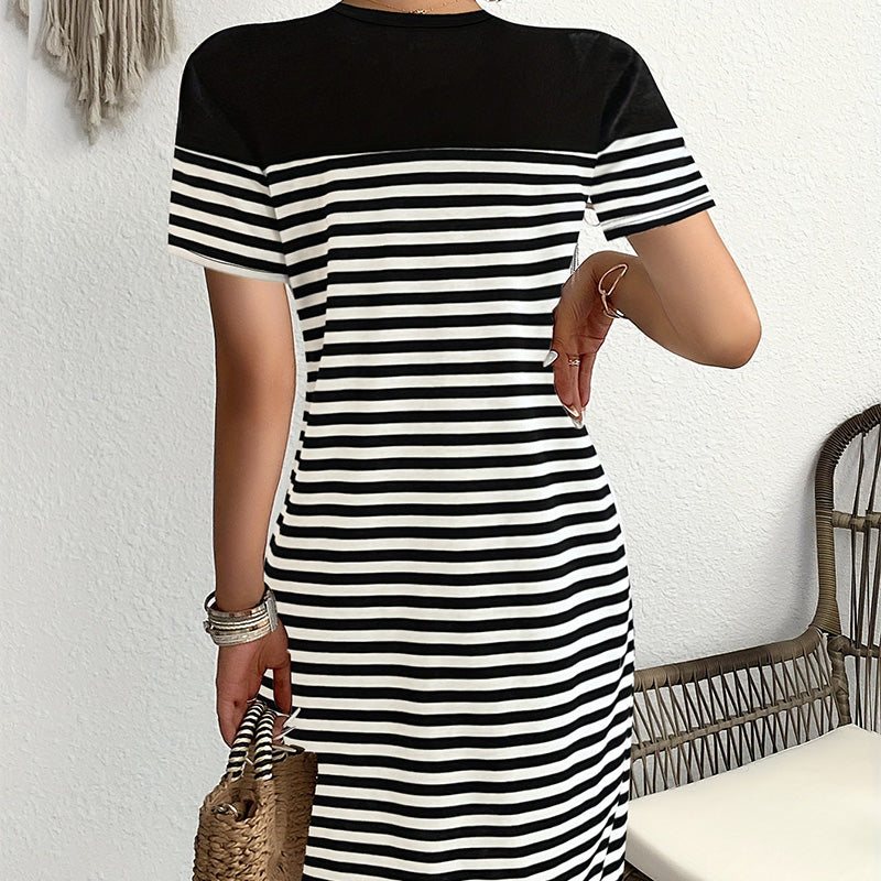 Lässiges Kleid mit Rundhalsausschnitt und Kontraststreifen