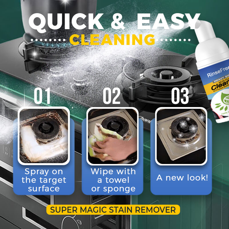 Ein schäumender Reiniger, der kraftvoll abbaut und hartnäckige Flecken, klebrige oder fettige Rückstände von Fettflecken entfernt, mit einem reichhaltigen, schnellen Schaum, der leicht in wenigen Minuten reinigt!