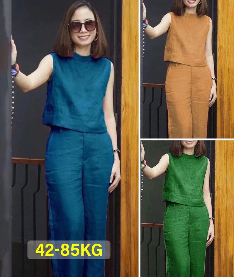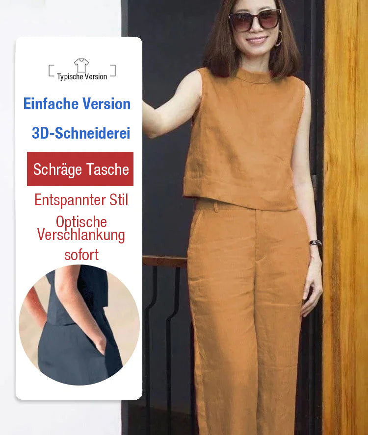 Unifarbener ärmelloser Leinenanzug aus Baumwolle für Damen