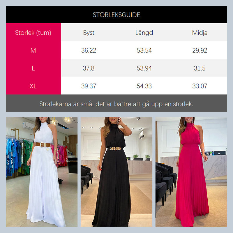 Sexig jumpsuit - Jumpsuit med halterneck, Àrmlös och sexig med vida ben Àr designad för att vara bÄde modemedveten och sexig. Den har en halterneck-design med snörning i nacken, vilket hjÀlper till att skapa en vacker silhuett och framhÀva dina kurvor. Den Ätdragande midjan hjÀlper ocksÄ till att forma en sexig figur. De extra lÄnga byxbenen med breda ben skapar en lÄng och smal look. Jumpsuit Àr tillverkad av högkvalitativt tyg som Àr lÀtt och luftig.