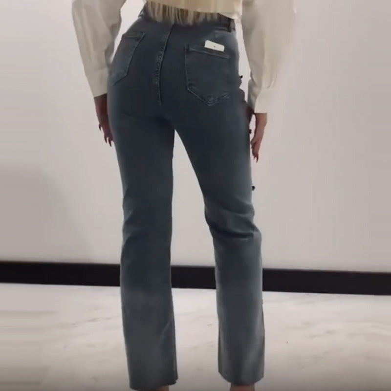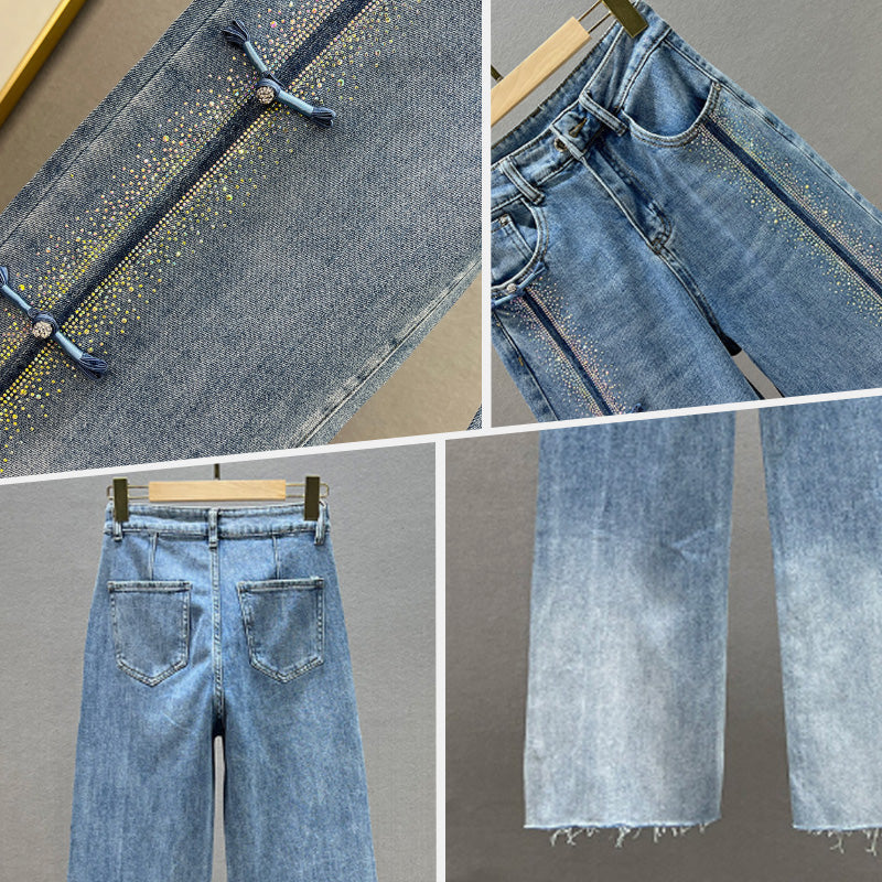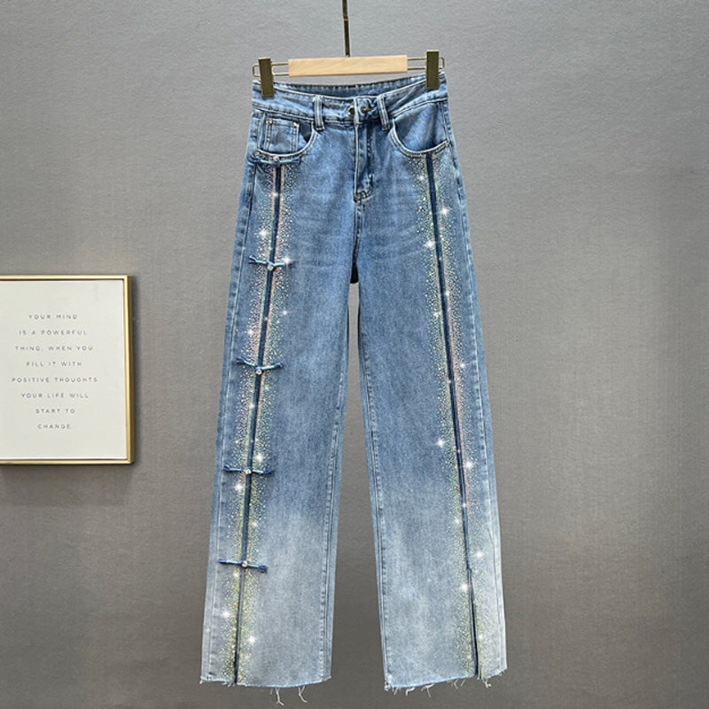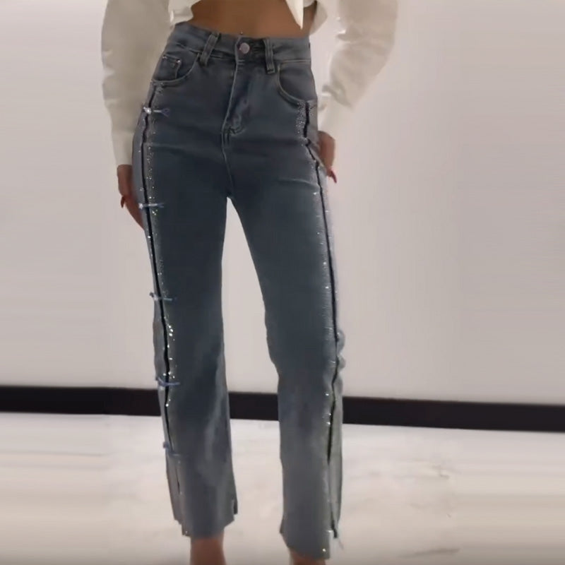 đWas soll ich morgen anziehen?â¨Damen Jeans mit glänzenden Strasssteinen und schickem Schlitzâ¨