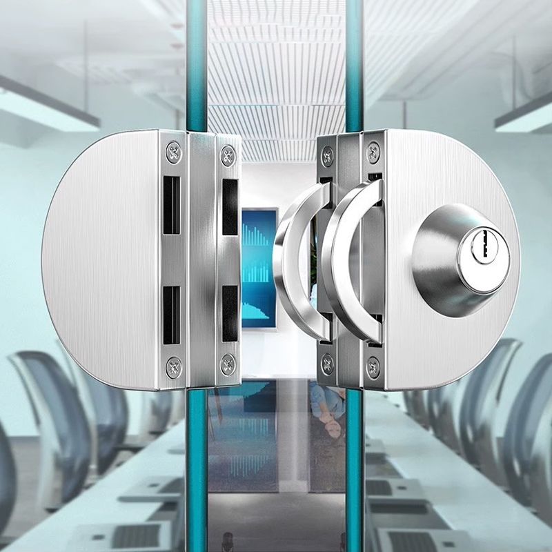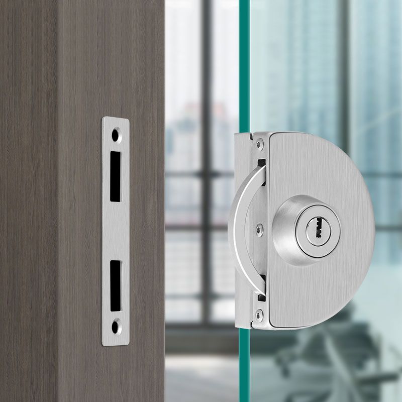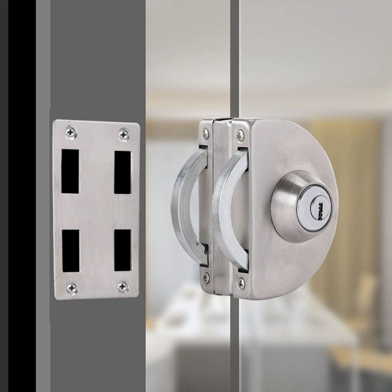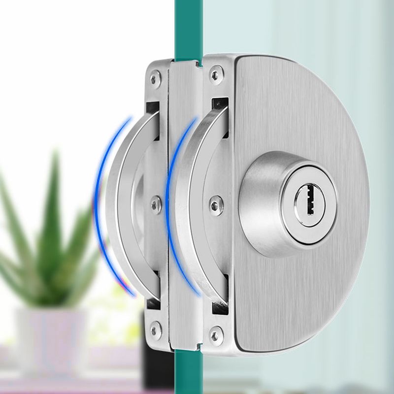 SCHLOSS NUR FÜR GLASTÜR: Spezieller Bogen schräge Ebene Design, sichere Leistung, geeignet für 8-12mm Dicke rahmenlose Schiebetür oder Schiebetür aus gehärtetem Glas.