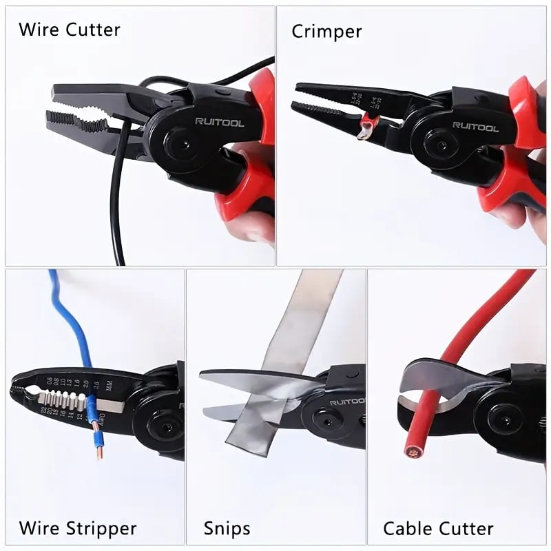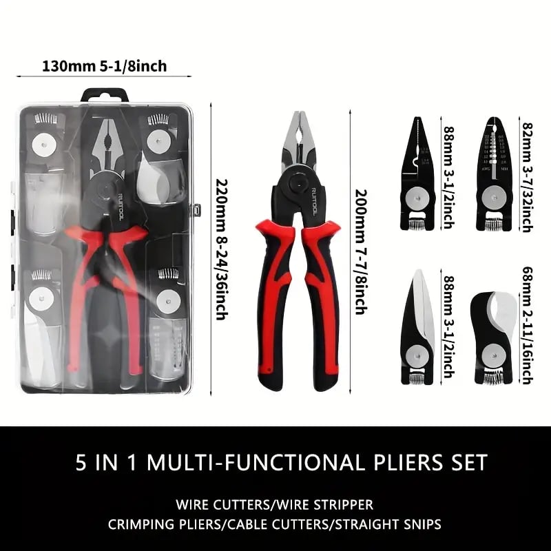 đ„Kostenlose Lieferungâ5-in-1-Zangenset, Mehrzweckzange mit austauschbarem Kopf, Hochleistungs-Kombizange Abisolierzange/Schneider/Krimpzange