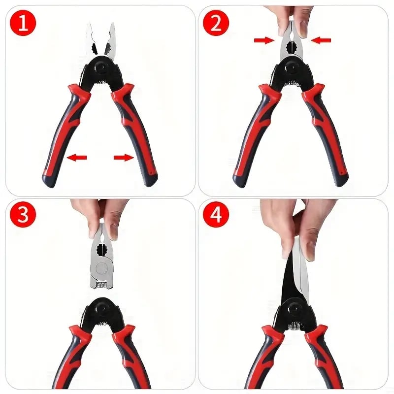 âïž PREMIUM QUALITY CONSTRUCTION: Jedes Werkzeug in unserem Set besteht aus hochwertigem Chrom-Vanadium-Stahl, der bei hohen Temperaturen geschmiedet wird, was zu auĂergewöhnlicher StĂ€rke, HĂ€rte und Haltbarkeit fĂŒhrt. Sie können sicher sein, dass diese Zangen den Anforderungen eines jeden Projekts standhalten und eine zuverlĂ€ssige Leistung und lange Lebensdauer bieten.
