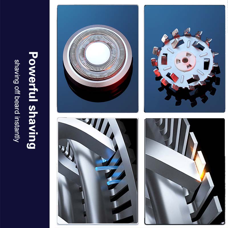 15 Klingen scharfe Edelstahl-Turbo-Wirbelklinge, spezialisiert auf harten Bart, 0,1mm dĂŒnne Edelstahlfolie, Doppelring 3D-Messernetz, erhöhen das Rasiervolumen, schwebende BogenoberflĂ€che glatt und haften an der Haut, entfernen Haare von der Wurzel.