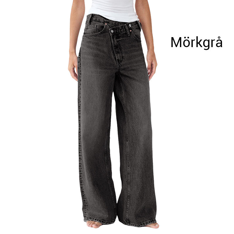 Damen-Jeans mit unregelmäßigem Schnitt, hohem Bund und Knopfleiste
