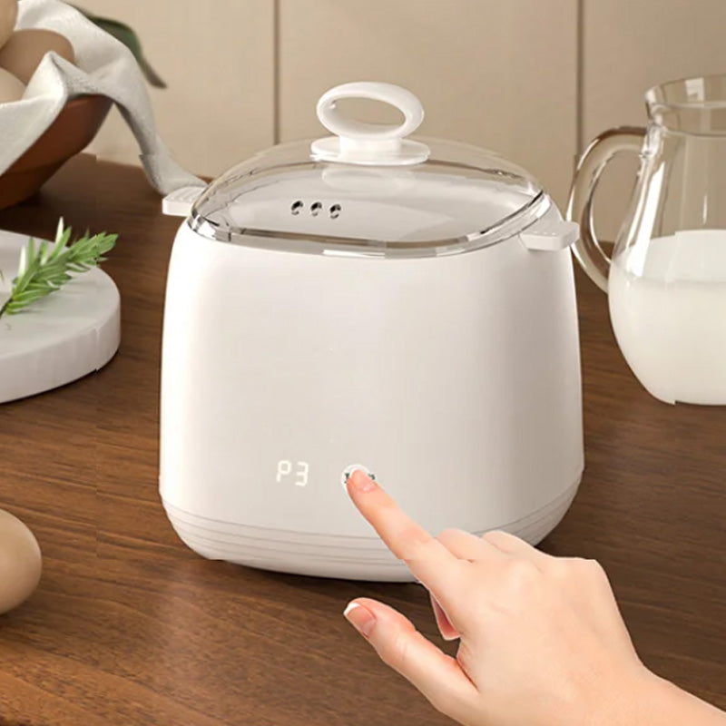 VOREINGESTELLTER TIMER: Dank des One-Touch-Bedienfelds mit LED-Anzeige lassen sich Garzeit und -modus mühelos einstellen. Mit dem integrierten 12-Stunden-Timer können Sie Mahlzeiten im Voraus zubereiten und so jederzeit frische, perfekt gekochte Eier genießen.