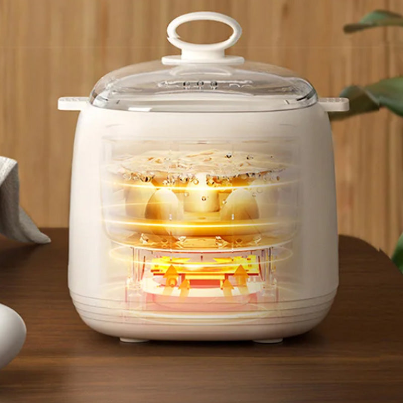 MULTIFUNKTION: Neben dem Eierkochen kann dieser Kocher auch Gemüse dämpfen, Milch erwärmen, Babynahrung zubereiten und sogar Knödel backen. Sein vielseitiges Design macht ihn zu einer praktischen Ergänzung für jede Küche.