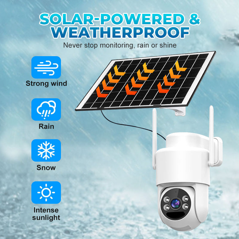 SOLARBETRIEBEN & WITTERUNGSBESTÄNDIG – Kein Ärger mehr mit leeren Batterien oder schlechtem Wetter. Die Kamera lädt sich über Solarenergie auf und ist nach IPX6 wasserdicht, sodass sie bei Regen, Schnee oder extremen Temperaturen zuverlässig arbeitet.