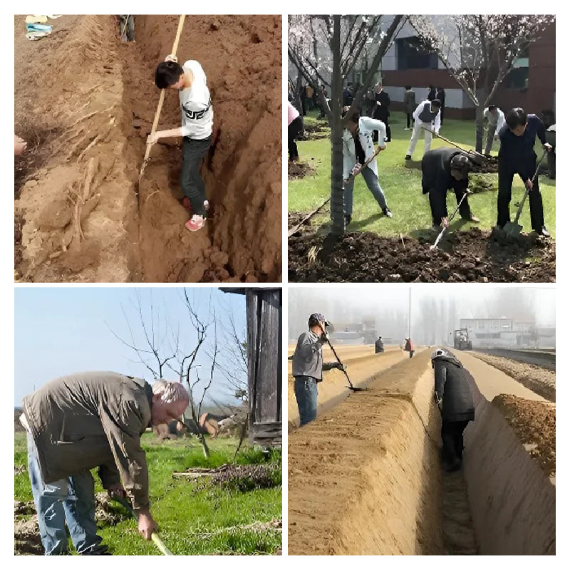 Funktion: Eis brechen und Schnee entfernen, GrĂ€ben ausheben, Kanten anlegen, graben, Gartenarbeiten durchfĂŒhren, harten Boden schneiden