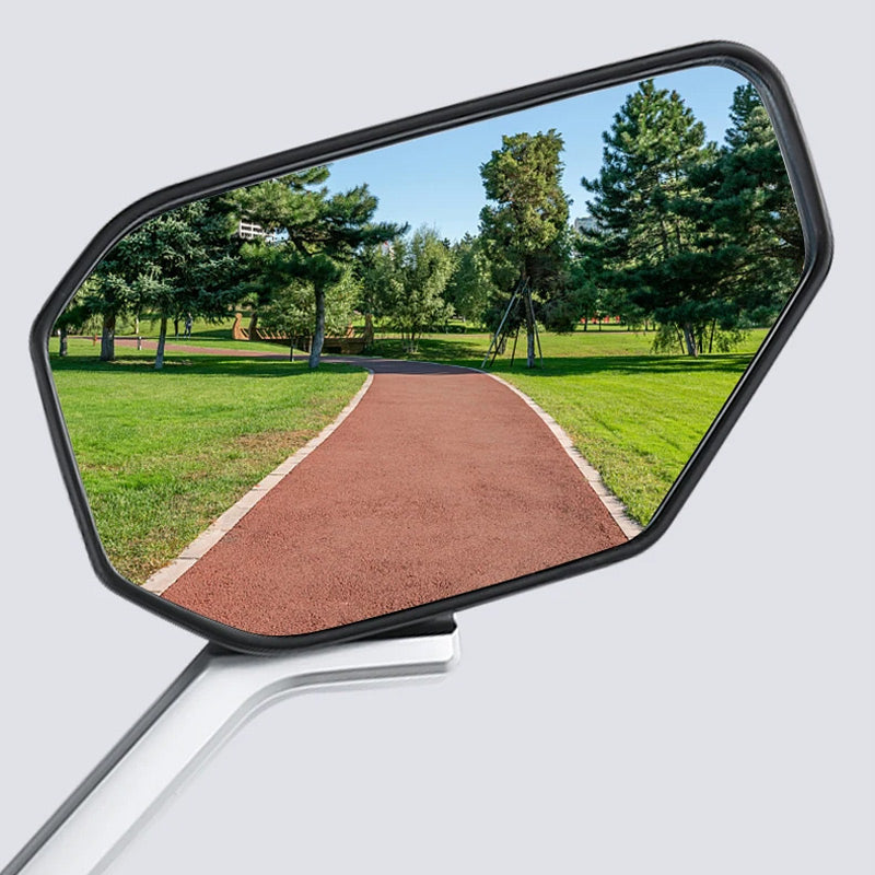 ADJUSTABLE ANGLES: The mirror features a fully adjustable angle, allowing you to adjust the view according to your riding position and preferences. Easily tilt and rotate the mirror to achieve optimal visibility and adjust to different road conditions.