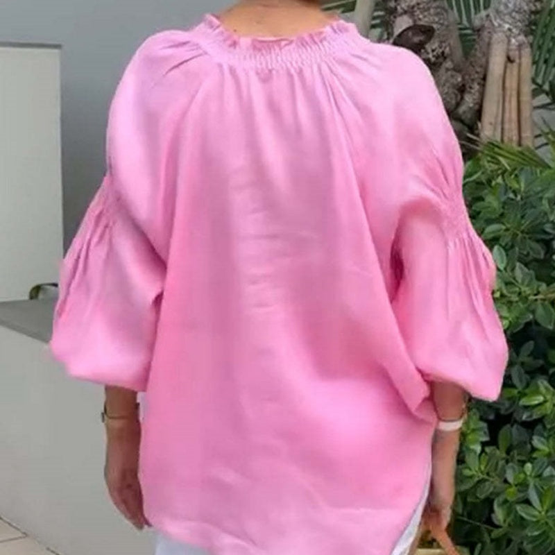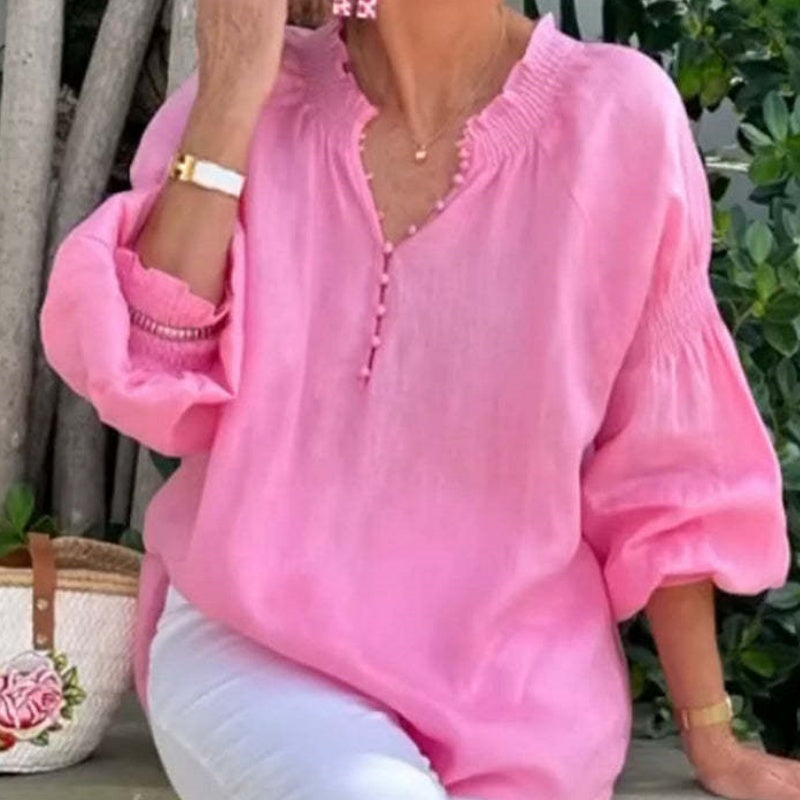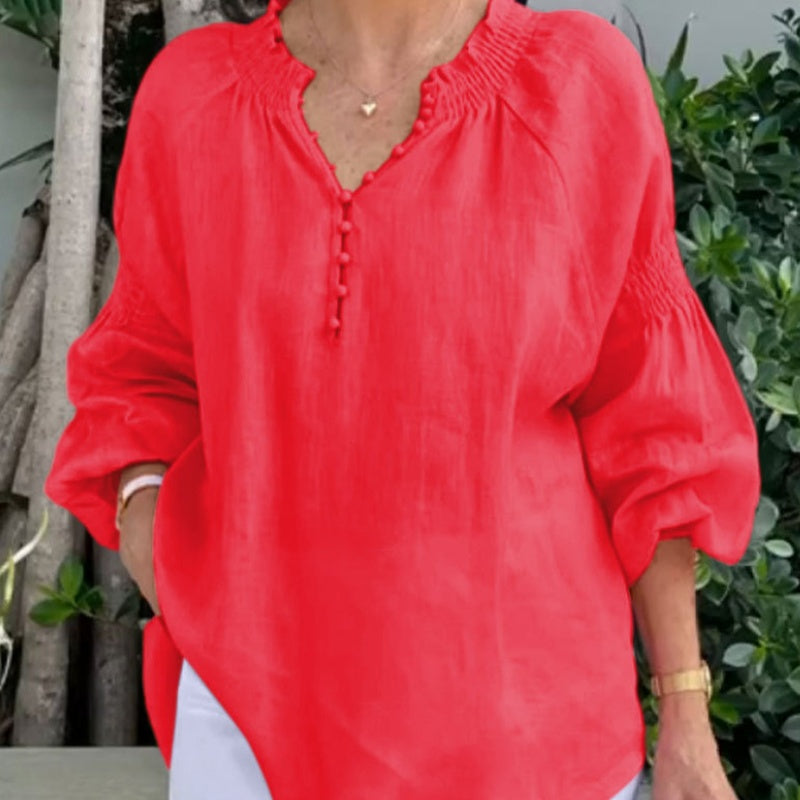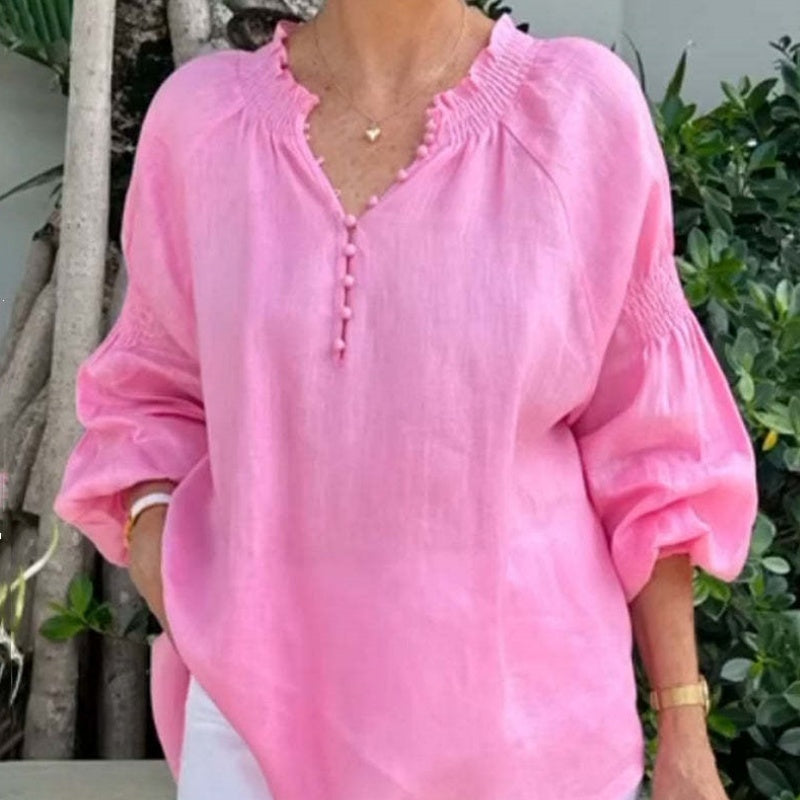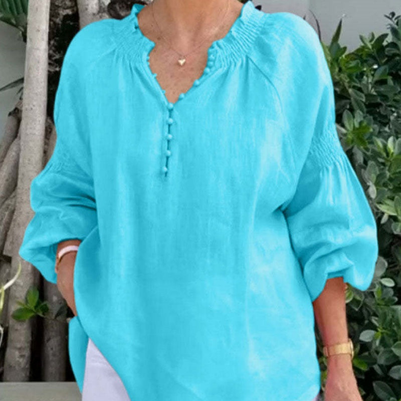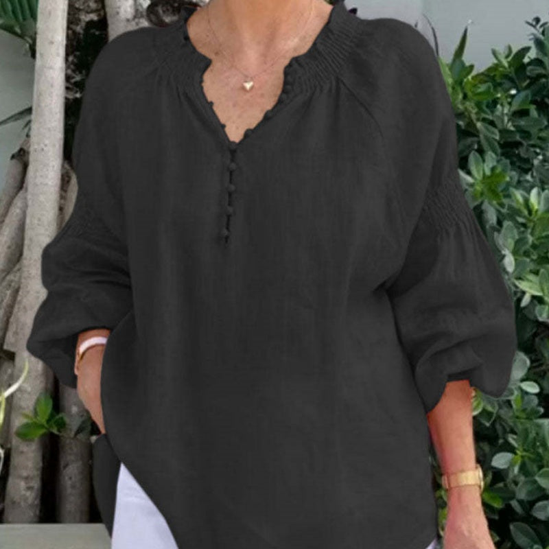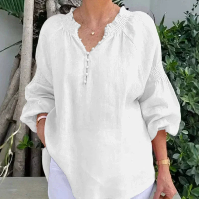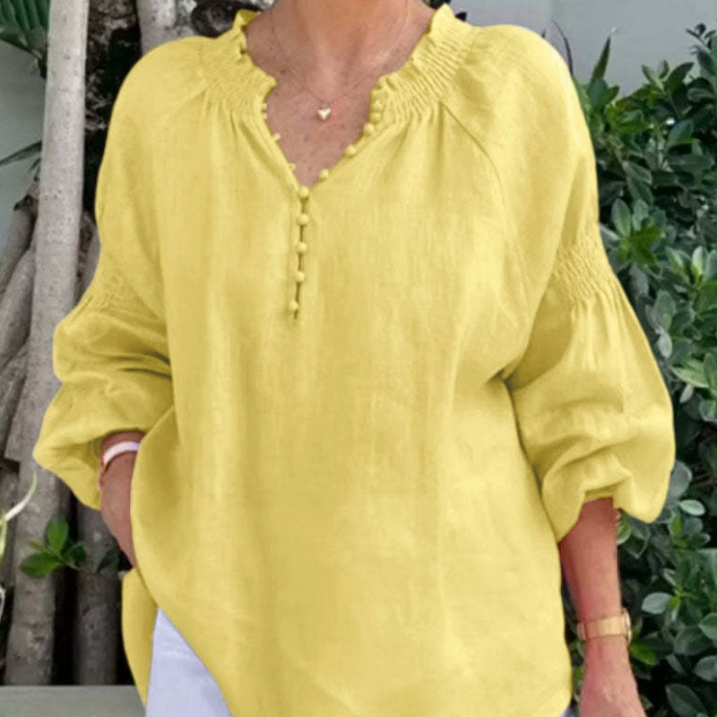 Lässiges Damen-Top aus Baumwoll-Leinen mit V-Ausschnitt