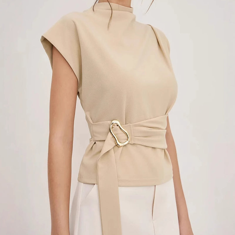 FLATTERING WAIST DETAIL â A metallic buckle highlights a slender silhouette and adds a modern edge. It instantly elevates the topâs elegance while accentuating curves. Suitable for both relaxed and fitted styles, it delivers versatile, refined looks.