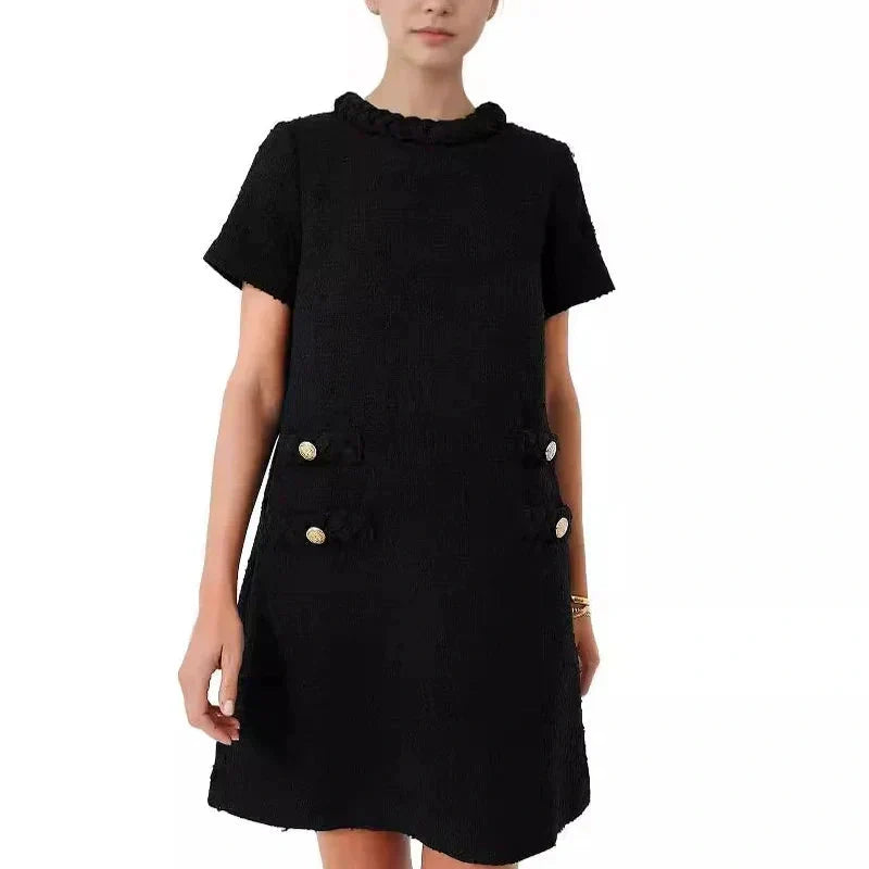 RETRO-INSPIRED TWEED FABRIC – Made from textured tweed, this dress brings a retro, sophisticated charm with a modern twist, perfect for any stylish wardrobe.