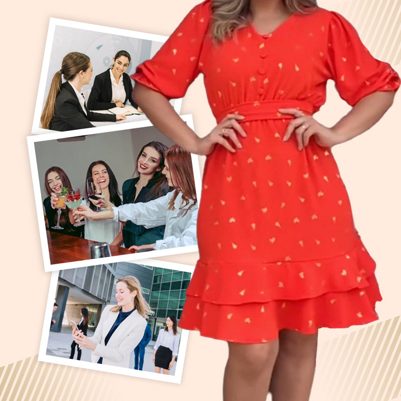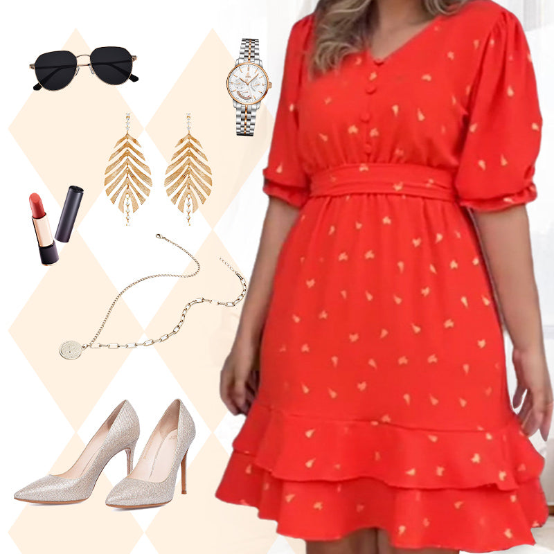 LEUCHTENDER ORANGE-DRUCK : Das auffällige Allover-Muster setzt ein selbstbewusstes Modestatement. Das auffällige Design lässt sich durch einfaches Wechseln der Accessoires mühelos von lässiger Tageskleidung zu Abendveranstaltungen wechseln.