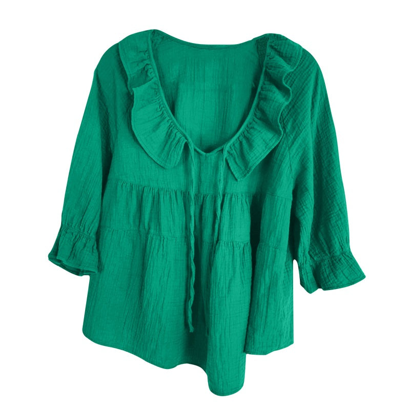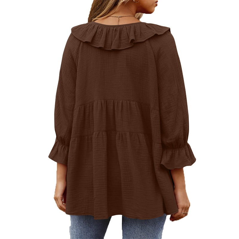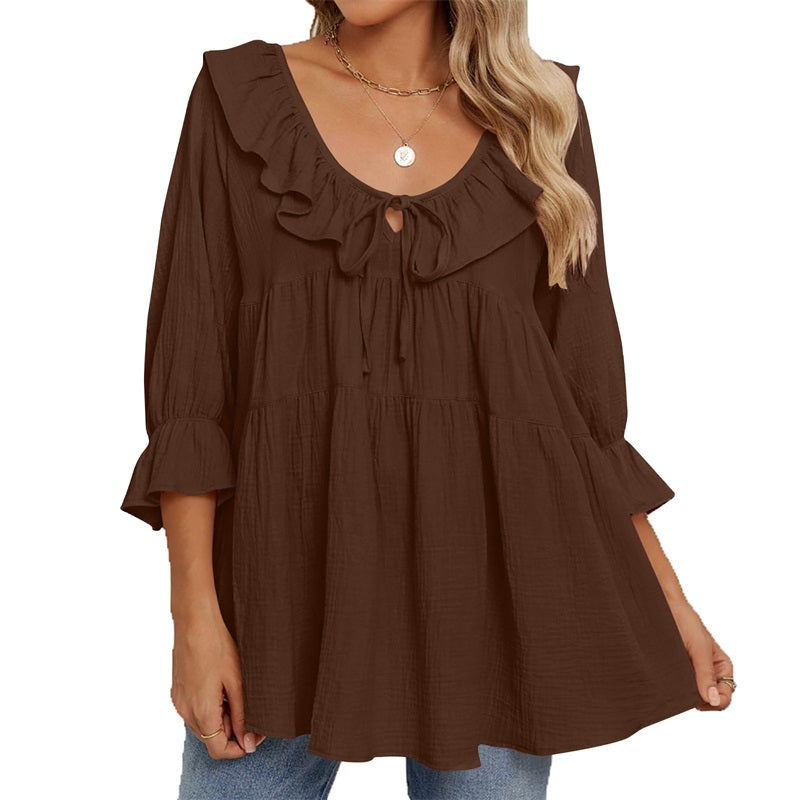 🔥Was soll ich morgen anziehen?🔥Damen-Hemden mit 3/4-Ärmeln, Bindeband vorne und Rüschen