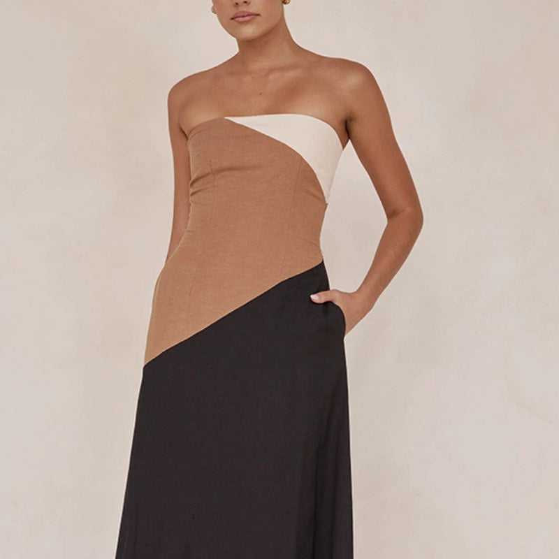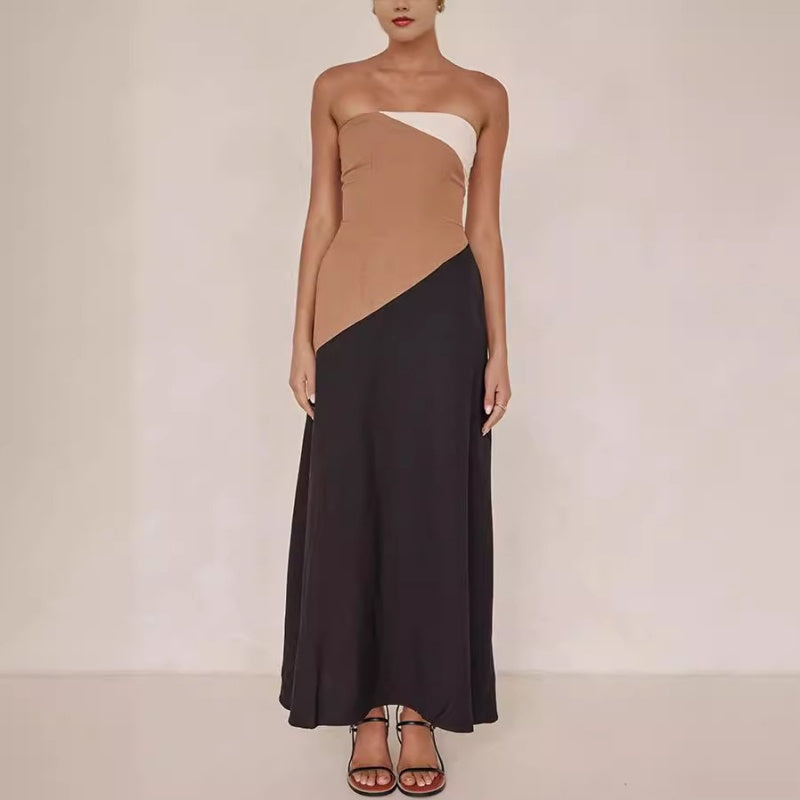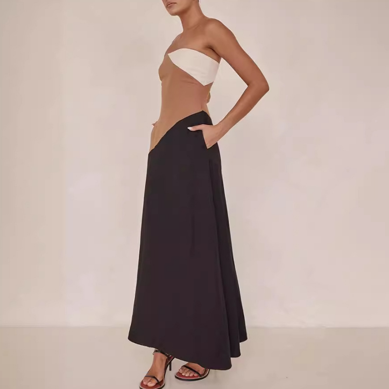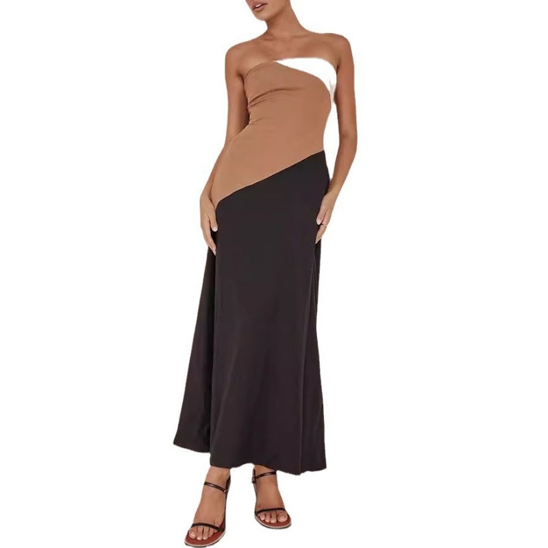 Package Includes:1*Women's Sleeveless Off-Shoulder Color-Block Bodycon Dress