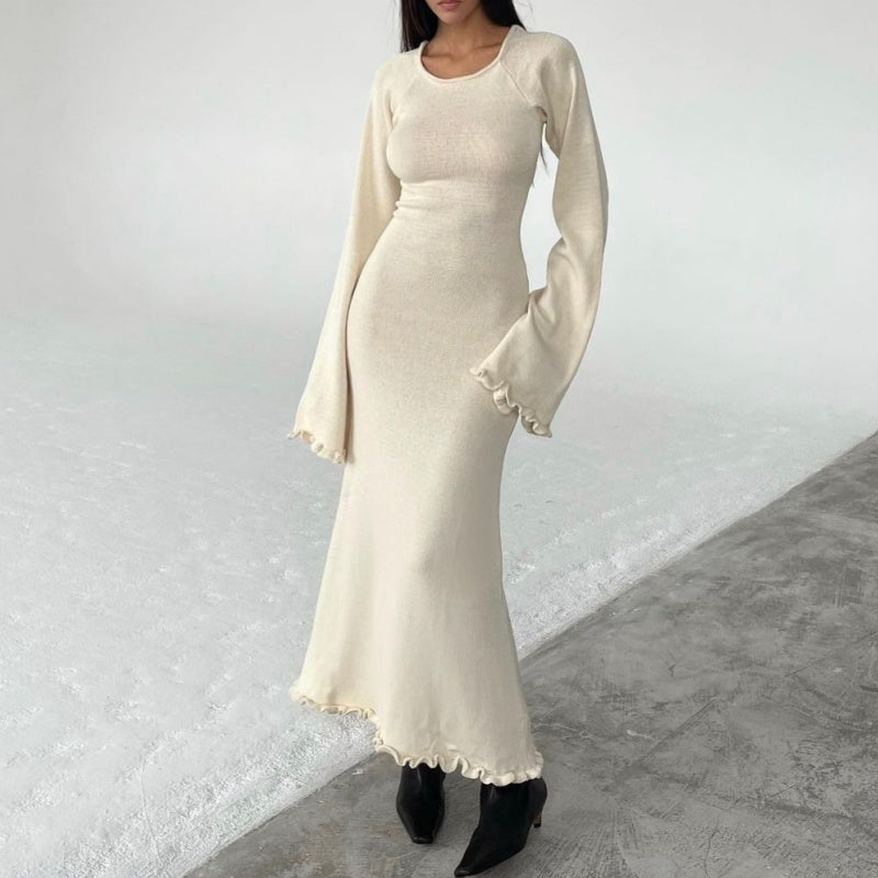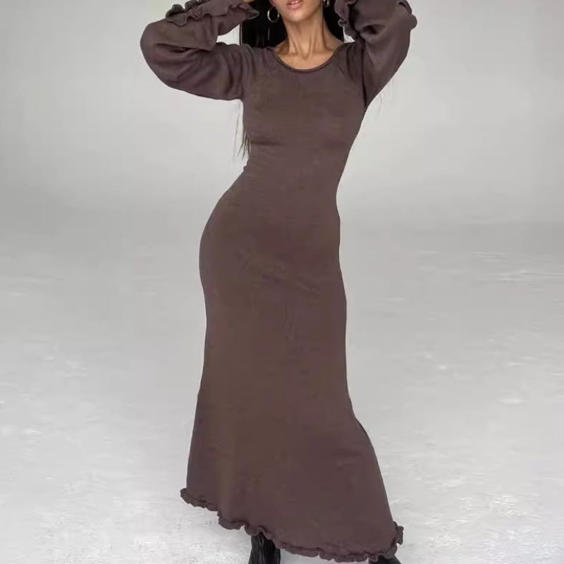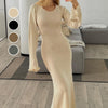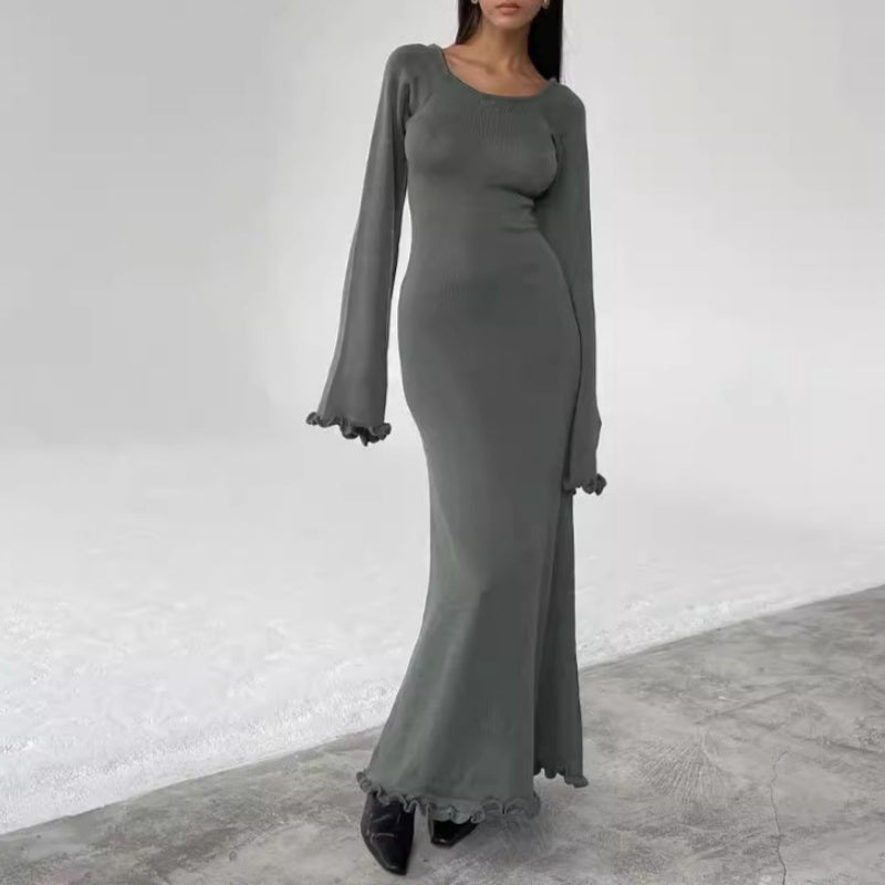 🎄Was soll ich morgen anziehen?🎄Einfarbige rückenfreie Langarm-Maxikleider für Damen
