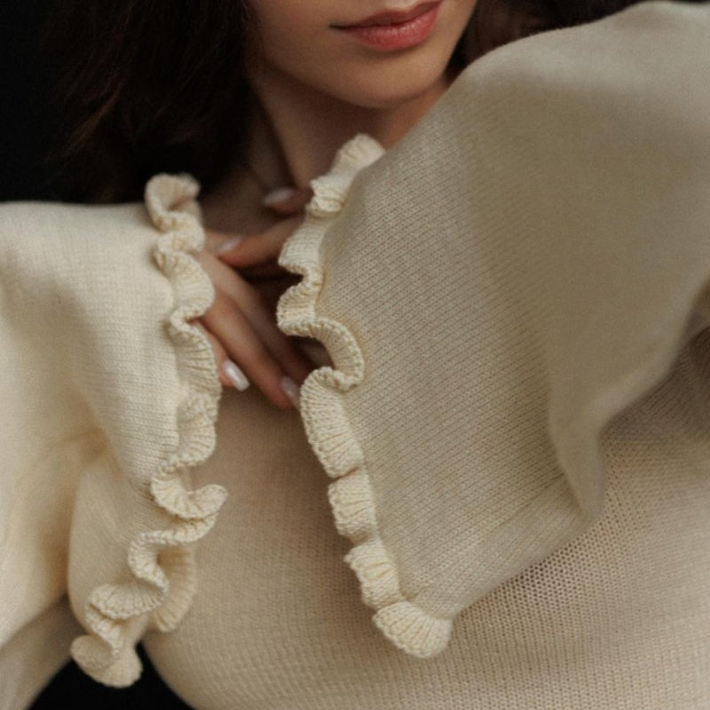 STYLISH LONG SLEEVES: The long sleeves and hem are adorned with playful lettuce-edge detailing, adding a charming flair and enhancing the solid-color design with unique accents.