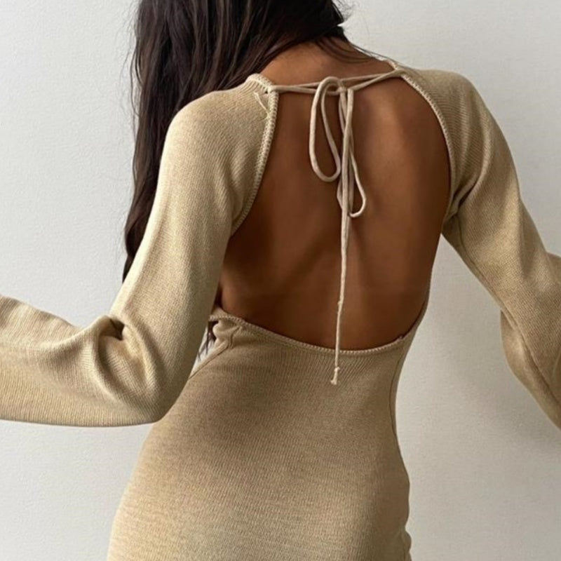 CHIC BACKLESS TIE DESIGN: Featuring a daring open-back style with an elegant neck tie, this dress adds a touch of allure, showcasing your beautiful silhouette with sophistication.