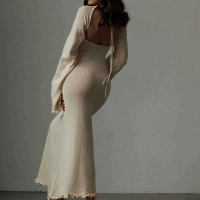 Package Includes: 1 * Women's Solid Backless Long-Sleeve Maxi Dresses